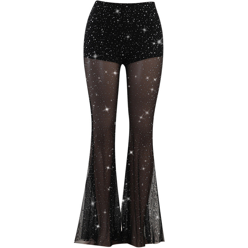 اجعل أسلوبك يخرج تمامًا من هذا العالم وهو يرتدي قيعان الجرس الأسود النجمة شبه البراقة للسيدات. هذه السراويل تستلهم من السبعينيات من القرن الماضي من خلال HEMS الجرس السفلي.