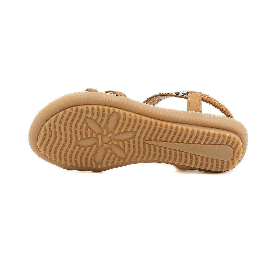 Bringen Sie Ihre Liebe zu Boho-Chic-Kleidung in den Vordergrund Ihres Stils mit diesen Knöchelsandalen mit unterschiedlichen Mustern und Blumen und Perlen, komplett mit einem Riemen um den Knöchel, zwei entlang der Zehe und einer am Vorderfuß.