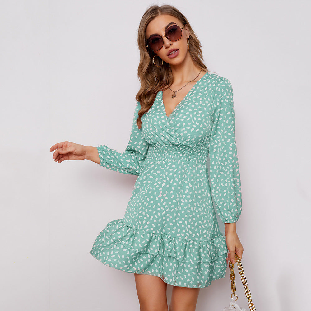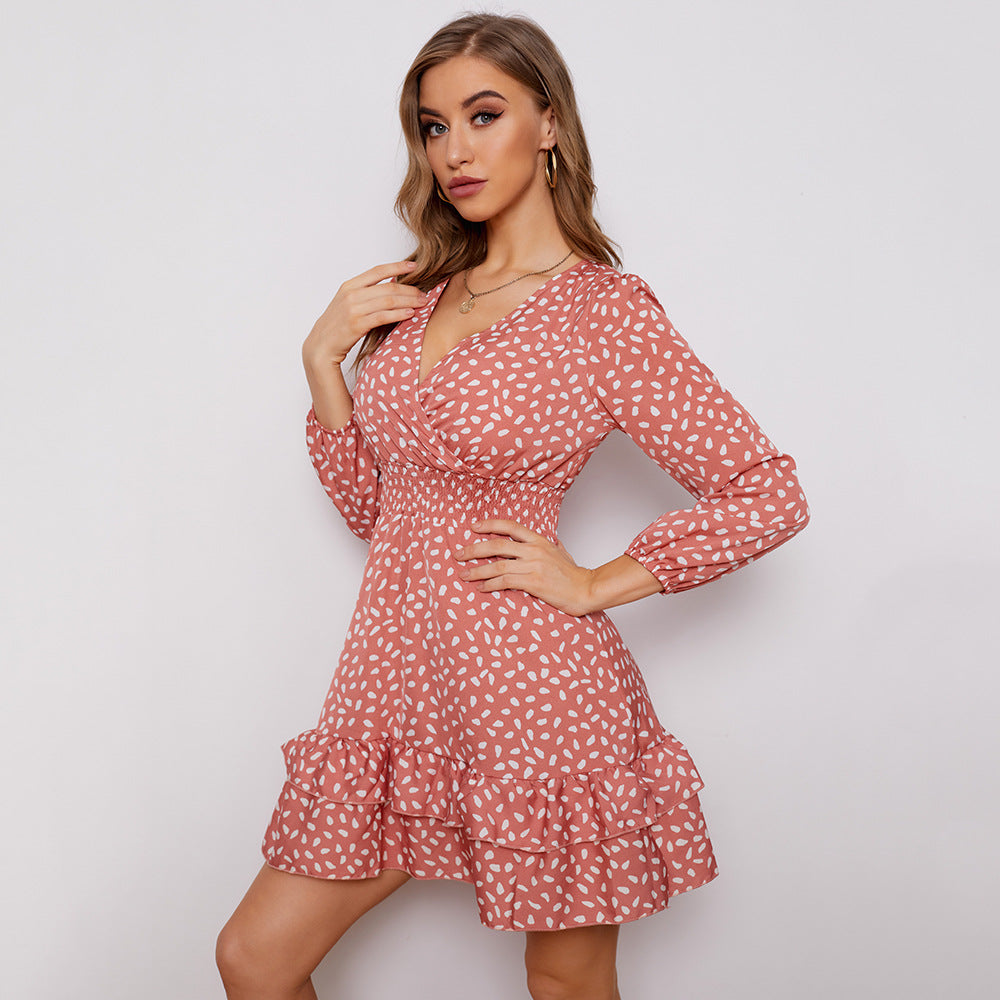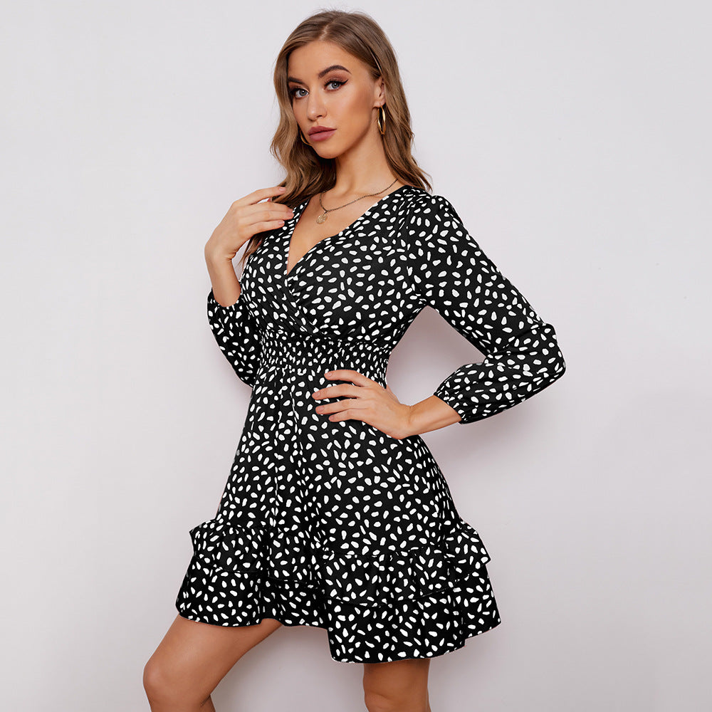 Women's Long Sleeve Polka Dot Mini Dress with Ruffled Hem
