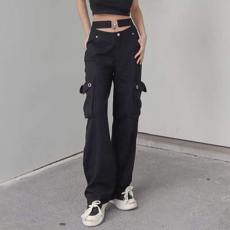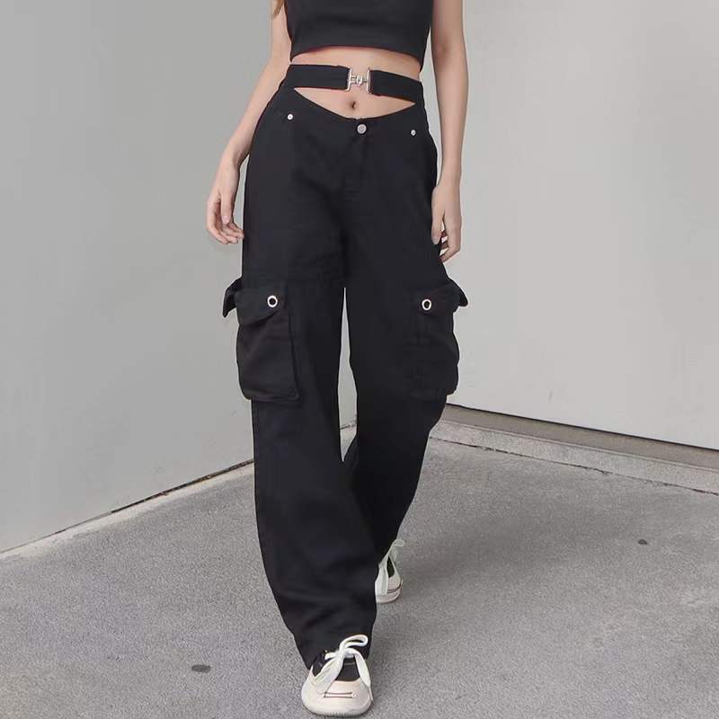 Stand out in your casual wear with the Women’s Straight Leg Black Pants with Attached Belt. These pants feature a unique belt attachment in the front that looks especially stylish when worn with crop tops.
