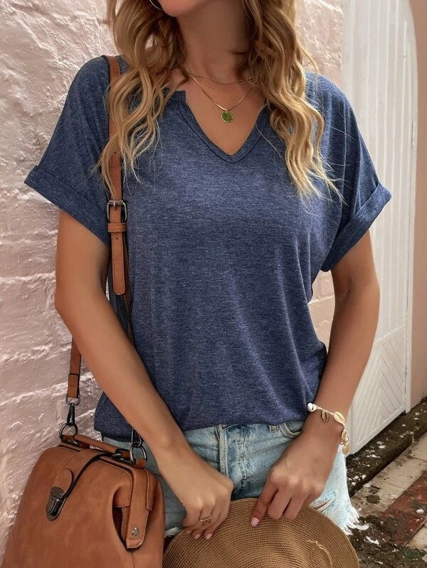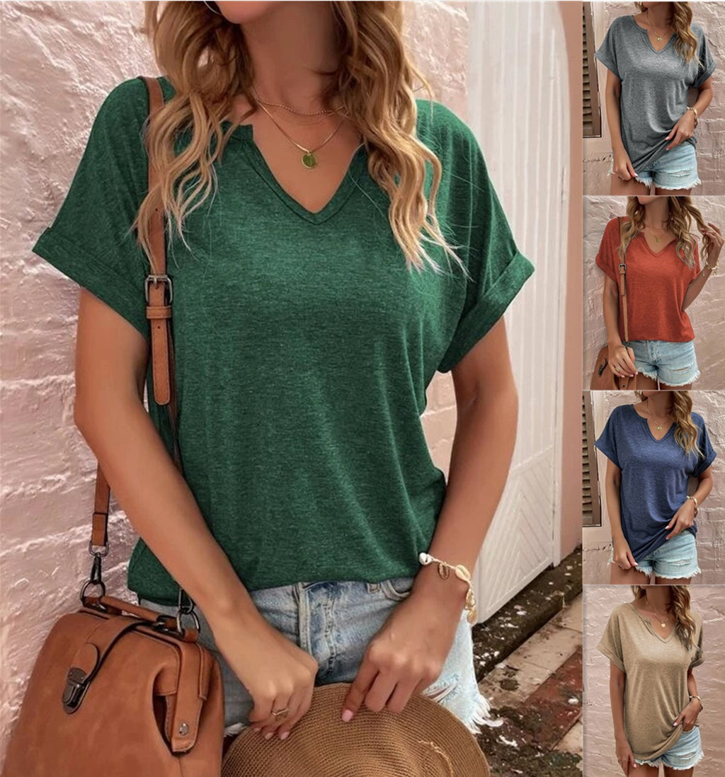 Keepit casual op je overdag op pads met dit V-hals met korte mouwen losse dames T-shirt. Het is comfortabel en ademend met zijn losse ontwerp encomes in zes kleurenopties.
