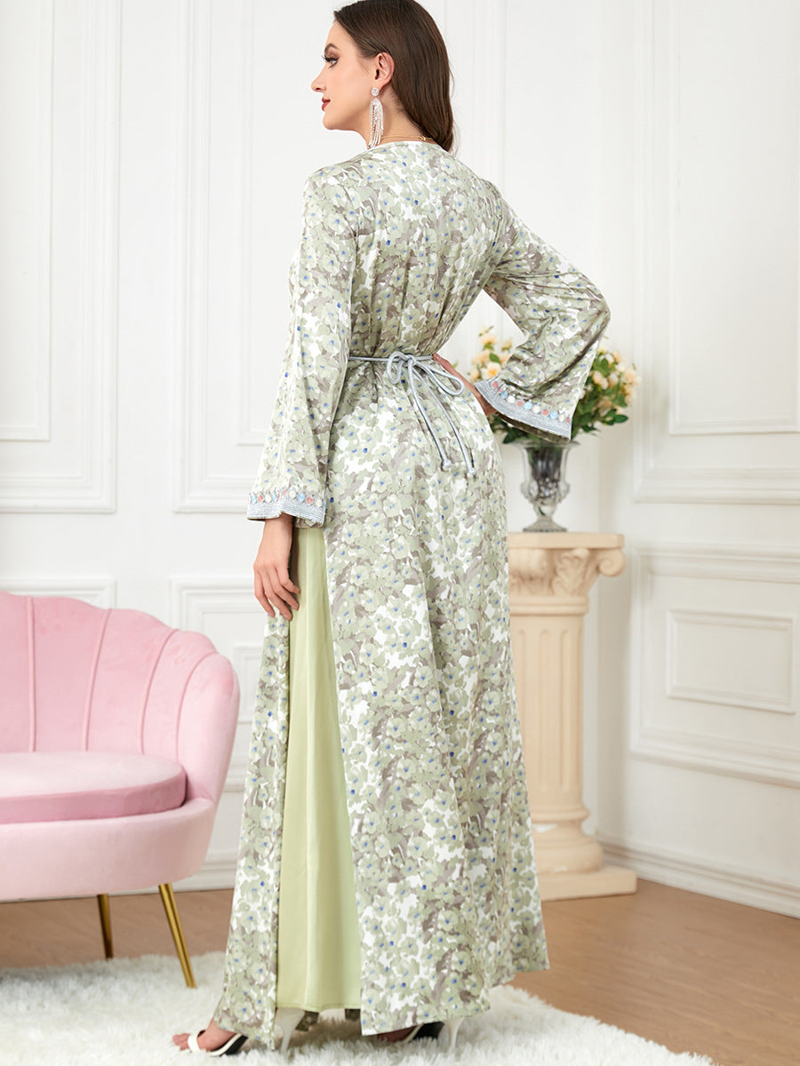Embody the colors of springtime in this Women's Long Sleeve Green and Pink Maxi Dress complete with small rosette details and watercolor-style floral print.