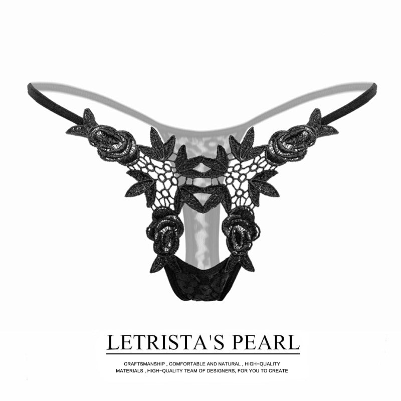 簡單的蕾絲切口繡花蕾絲丁字褲